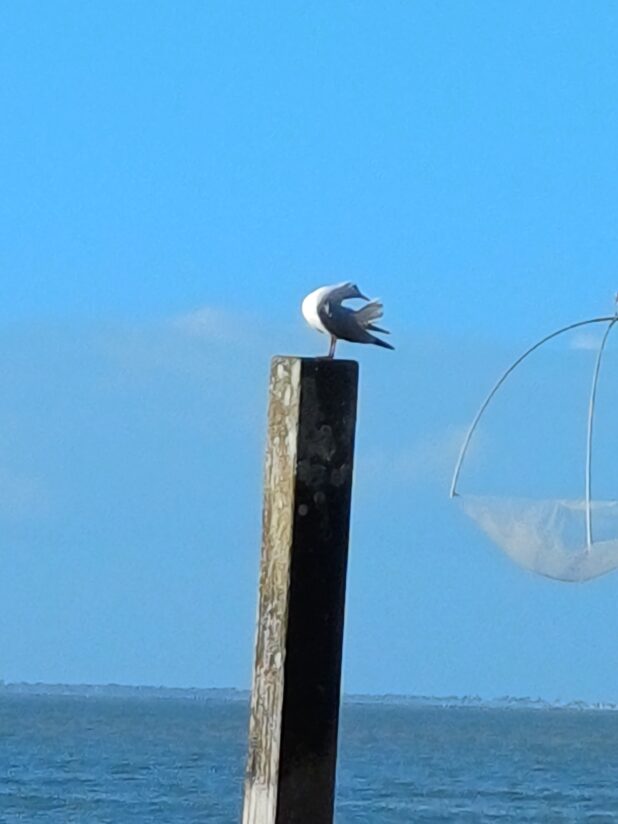 Roulant vers l’Ouest, une pluie tenace m’accueille à rejoindre l’océan gris et bousculé. Je retrouve ma petite mère, un peu plus fragile à chaque fois, un peu plus tassée entre les épaules. Elle a mis son ensemble rouge pour m’accueillir. Le soir on me donne des nouvelles rassurantes de Mona la poule rousse. On y verra plus clair demain.