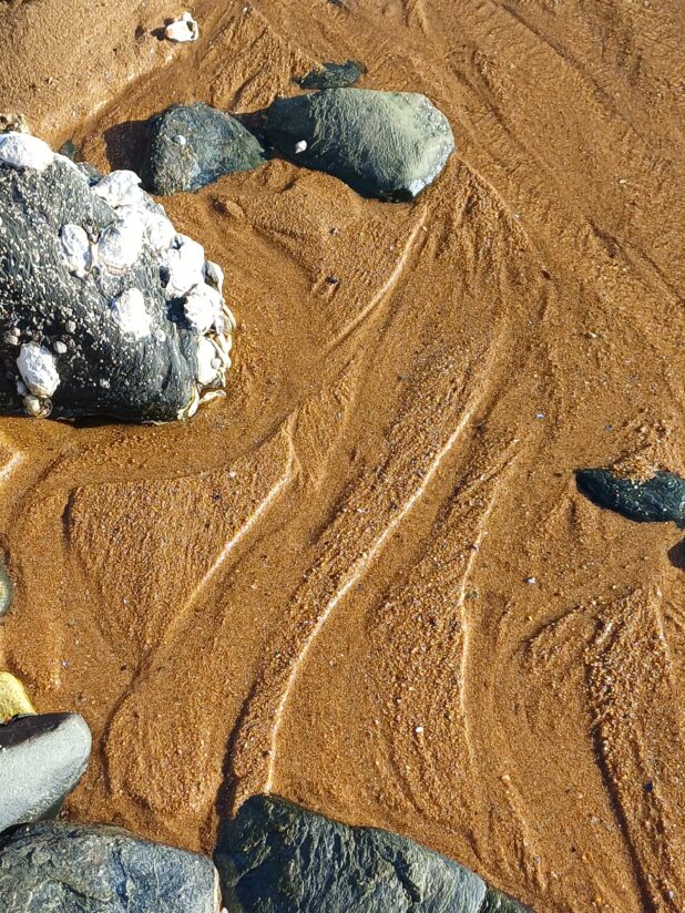 Encore un peu de temps à fréquenter ces rivages, à chercher d’où vient l’eau, à observer ses minuscules circulations autour des coquillages et des corps de pierre.