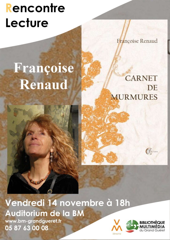 RENCONTRE LECTURE autour de CARNET DE MURMURES | auditorium de la médiathèque du Grand Guéret | 14 novembre 2025 Auteur/autrice de la publication :françoise Publication publiée :28 octobre 2025 Post category:événements Commentaires de la publication :0 commentaire Laisser un commentaire Annuler la réponseCommentEnter your name or username to comment Enter your email address to comment Saisir l’URL de votre site (facultatif) Δ Ce site utilise Akismet pour réduire les indésirables. En savoir plus sur la façon dont les données de vos commentaires sont traitées. Read more articles Article précédentQUATRE SAISONS | montage photographique | une promenade poétique aux Fougères, octobre 2025 Vous devriez également aimer Un samedi à Meilhards en Corrèze | 21 juillet 2025 21 juillet 2025 Rencontre dans le pré, Savoie, le 2 octobre 2018 4 octobre 2018 dur le lundi | un texte pour la revue LES VILLES EN VOIX | 27 février 2022 2 mars 2022