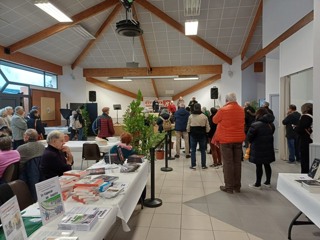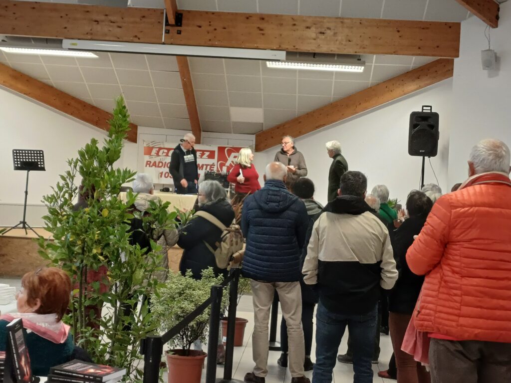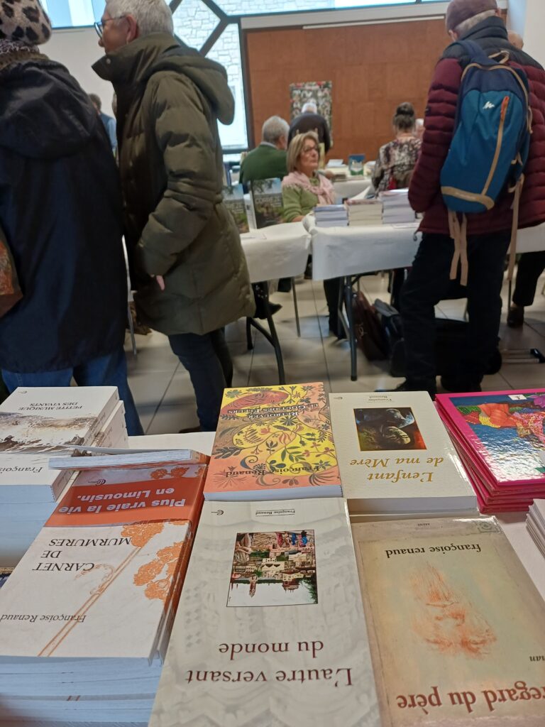 Toitures et bas-côtés enneigés au réveil. Peu de lecteurs au rendez-vous à cause de la pluie incessante. La gorge me fait mal, et aussi les muscles du dos et des jambes. Tenir le coup jusqu’au soir. Je retrouve quelques compagnons auteurs rencontrés il y a deux ans, Michel l’avocat et Francesco de Calabre. Au déjeuner, une soupe délicieuse au potimarron nous requinque. Francesco, désormais élu à la mairie de Cahors et au conseil départemental, défend l’écologie. Je le trouve courageux et suis en accord avec ce qu’il dit.